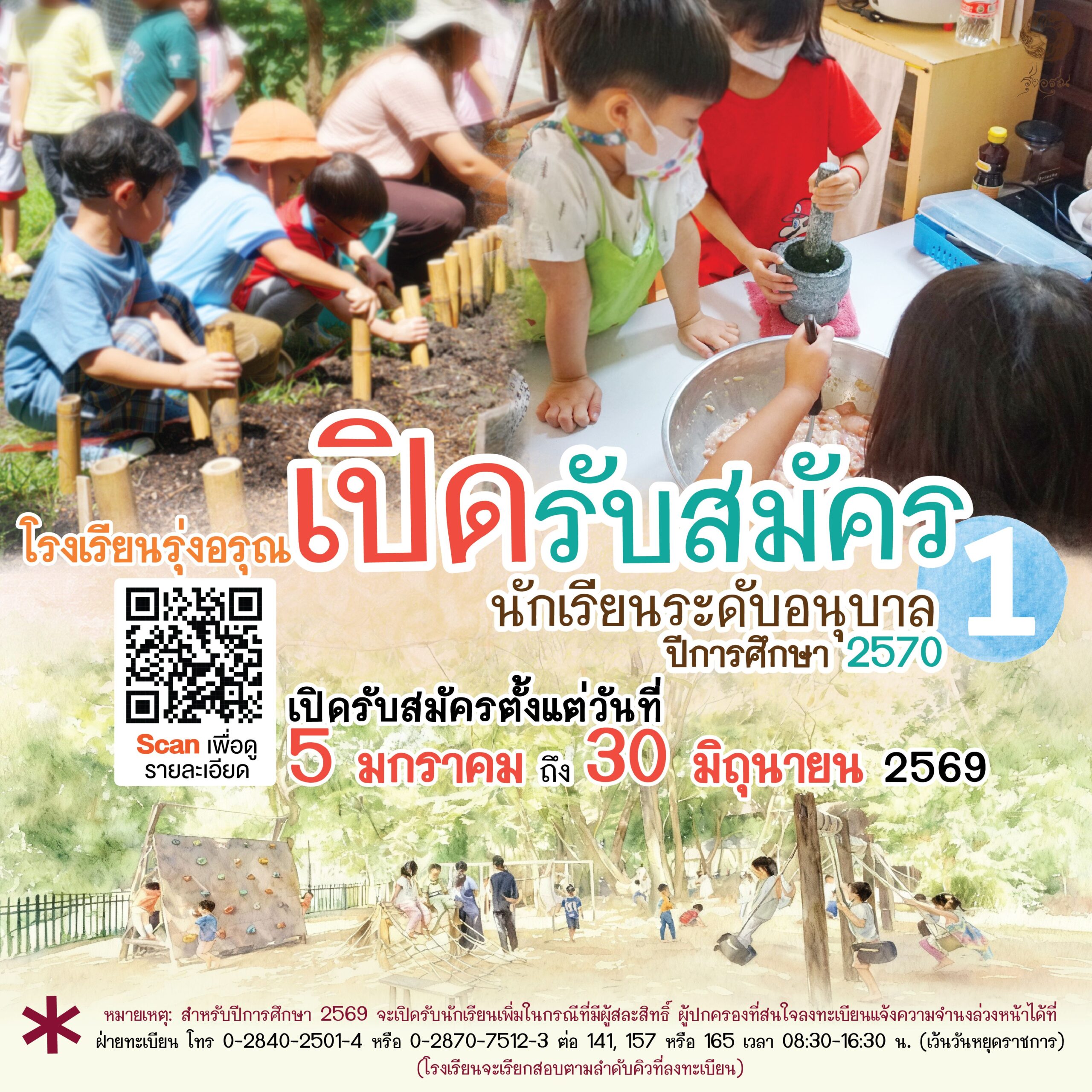 ข่าวประชาสัมพันธ์, โรงเรียนรุ่งอรุณ, โรงเรียนอนุบาล เปิดรับสมาชิกใหม่สู่ครอบครัวรุ่งอรุณ January 14, 2026 Previous ประกาศรายชื่อนักเรียนที่ผ่านการคัดเลือกเข้าเรียน ระดับชั้น อนุบาล 1 ปีการศึกษา 2569 Newer ห้องเรียนพ่อแม่ ปีการศึกษา 2569